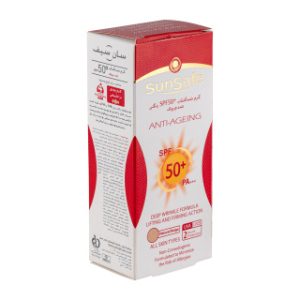 کرم ضد آفتاب و ضد چروک فاقد رنگ spf50 سان سیف برای همه افراد با انواع پوست مناسب است.